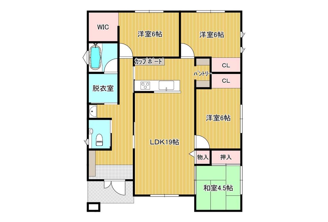 リビング収納やシューズボックス、各居室収納をしっかり確保し、すっきりと暮らせる間取りに仕上げました。