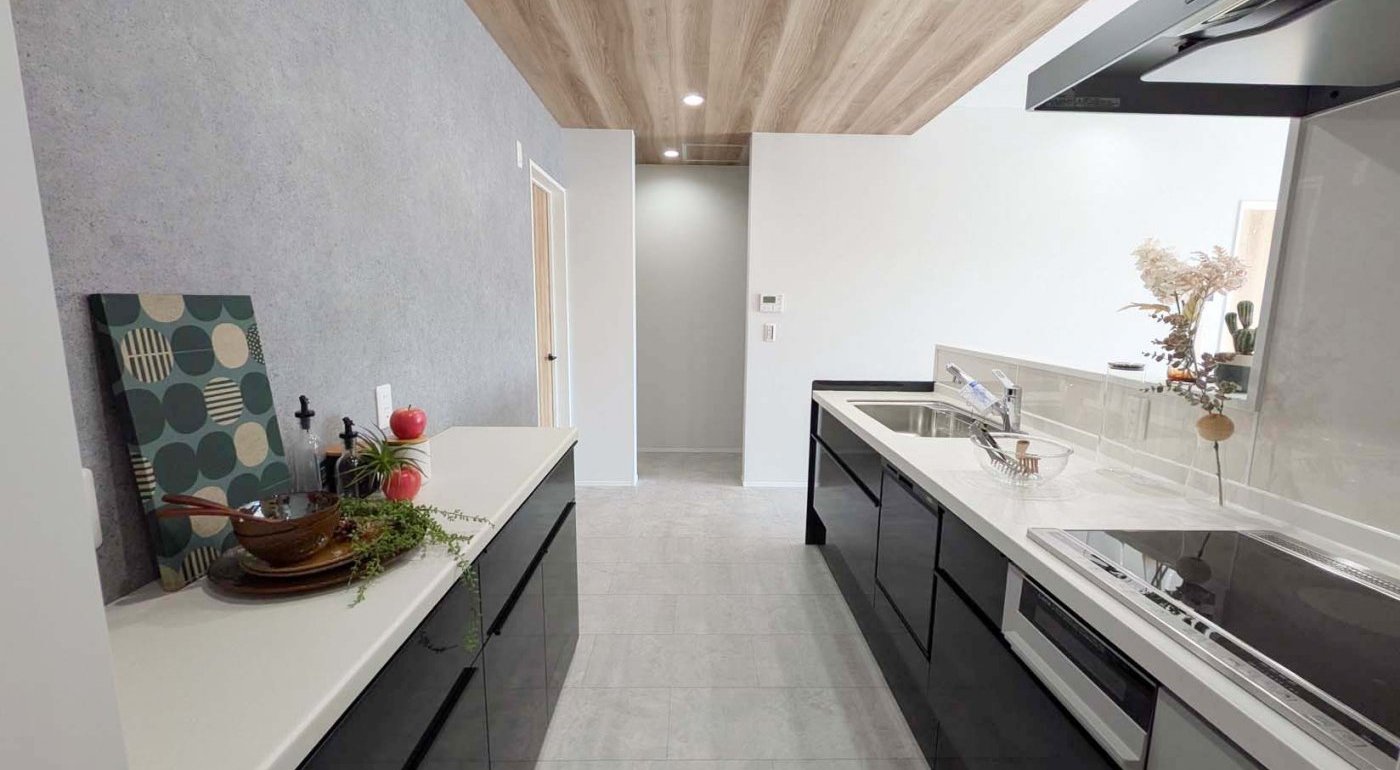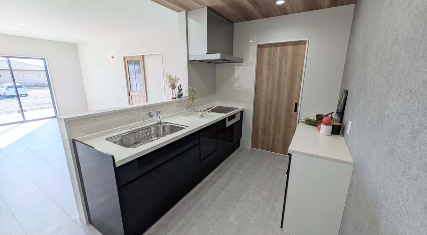 キッチンはゆとりある2550サイズを採用。大容量の引き出し収納で、使いやすさにも配慮しています。